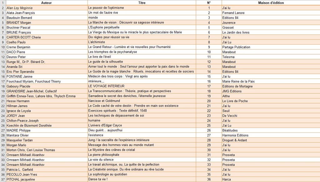 Liste de livres